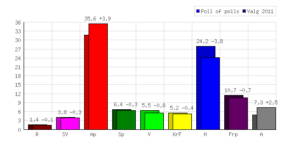 Det er to faktorer som i så fall må slå inn: For det første så må begge småpartiene på rødgrønn side godt over sperregrensen. Senterpartiet berger det nok ganske sikkert, for de har et grunnfjell som alene bør kunne løfte dem opp på 5-tallet. Jokeren er SV. Jeg tror de karer seg over 4 %, men det er først når de kommer over 5% at de sentrale profilene i partiet (Lysbakken, Solhjell, Torkildsen, Holmås og Valen) er sikret stortingsplass. Samtidig må minst ett av småpartiene på borgerlig side under sperregrensen. For Venstre er det ikke usannsynlig, mens KrF ganske sikkert berger seg på sitt grunnfjell.Selv om småpartiene i så måte blir jokere vil den mest avgjørende faktoren for valgutfallet være: Hvorvidt Ap makter å ta igjen mesteparten av sin tapte oppslutning fra 2009. Mye av oppmerksomheten har vært rettet mot at småpartiene i regjeringen sliter, men faktum er at det er Ap som har tapt flest velgere og det er de som har den største jobben med å vinne flertallet tilbake. Det kan riktignok bli rødgrønt flertall med en samlet oppslutning for de tre partiene som er lavere enn i 2009, men det synes likevel å være i overkant langt fram. Beregninger viser at de rødgrønne må hente inn nesten ti tusen velgere hver eneste dag fram til 9. september